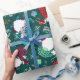 Mit diesen niedlichen Gnomen in dieser Ferienzeit wackeln! Gnomes in modernen Farbtönen aquamarin, Limettengrün, Aquablau, Rot und Maron umgeben von Süßspeisen, Schneeflocken, Poinsettia Blume und Geschenken. Ideal zum Geschenken an Kinder und Erwachsene gleichermaßen! Handgeschriebene Redewendungen beinhalten "wo meine Gnome sind?" und "Wer soll das tun?". Dunkler Wald Wintergrün Hintergrund.