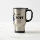 Wörter, die man auf einem Reisetug für einen Teetrinker vorfinden kann: Wo Tee ist, ist HOPE. Die Tasse ist weiß und mit einer handgezückten Teetasse in Blautönen dekoriert. Sie können es mit Ihrem Namen personalisieren.