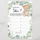 Wo war sie Bear Greenerenery Baby Shower Game Card Flyer