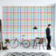Bring instant cheer to your space with this wobbly paint stroke style neon pastel plaid wallpaper for interiors. The soft rainbow stripes and woven look create are ideal for brightening living rooms, nurseries, or creative studios. A colourful, bold, and maximalist statement piece that adds imagination, joy, and optimism to any wall. Great for fun and colourful birthday photo walls, too!