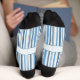 Slightly wobbly stripes in blue on white. Uneven, as if hand-drawn. Suitable for the office or other serious business activities. At least as long as you keep your shoes on. Underneath, at the foot, there's still some space, where you can add your name or a short quote that brightens your day.
