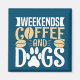 Hundefreunde, die auch Liebe Kaffee und Wochenenden werden dieses Design auf Taschen, Tasse, T - Shirt und mehr mit Bräunungs-und Weiß-Text mit Kaffeebohnen und einem Hundepuppprint, der Weekends Coffee and Dogs liest, Liebe!
