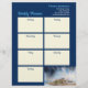 Basierend auf Aquarellmalerei von Farida Greenfield, dem Leuchtturm von St Mary's, das auf der kleinen Insel St Mary's Island, nördlich von Whitley Bay an der Küste von Nordostengland liegt. Die kleine Felseninsel ist mit dem Festland durch eine kurze Betonhalle verbunden, die bei Flut unter Wasser liegt. Das Design ist für wöchentliche Planer in sieben tägliche Abschnitte unterteilt, es ist auch doppelseitig. Es hat einen schlichten marineblauen Hintergrund und kann mit eigenen Texten angepasst werden.