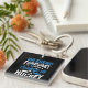 Hockey-Spieler-Schlüsselanhänger mit einem humorvollen Sprichwort mit weißem und blauem Text auf schwarzem Hintergrund, der Weekend Forecast 100% Chance auf Hockey!