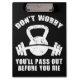WOD-Spaß - Vor dem Die weitergeben. Funny Fitness Klemmbrett