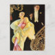 Sehr wohlhabendes Paar, das eine Treppe in einem Party absteigt. Rick Farben. Vintage Darstellung