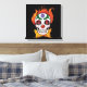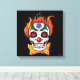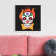 Der böse Clown-Schädel-Dämonenwall Art. Böser Schädel Clown Bloody Dämon mit feurigen Haar Zucker Schädel-Design. Passen Sie Größe, Stil und Farbe an, um Ihre Wohngestaltung der Clownwall-Leinwand zu erfüllen.