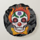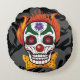 Wohngestaltung des bösen Clownschädels rund um das Kissenloch. Der böse Clown, Schädel und Dämon rollten für diese böse Horror-Kreatur in einen. Große Wohngestaltung oder Halloween Dekoration.