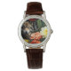 Klassische Damenuhr mit braunem Lederarmband