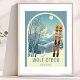 Poster from a wonderful ski resort holiday in the beautiful mountains of Wolf Creek, Colorado! This small poster features an arch with a stunning blue-grey mountain landscape and retro ski boards in an orange tribal pattern in the foreground. The rest is in a lovely light blue tone with the location lettering in a modern font. The design is a lovely combination of retro and modern, and I hope you enjoy it!