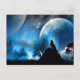 Wunderbare Fantasiepostkarte eines Wolfs, der bis zu 2 Monde heult.