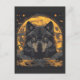 Wolf thematisierte Postkarte. Auf dem Wasser Wikingschiffe.