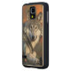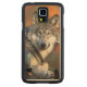 Wolf-Fotografie. Wolfliebhaber sind Liebe diese Bildphotographie gewillt. Netter landschaftlicher Herbst farbiger Hintergrund. Grauer/grauer Wolf mit gelben Augen.
