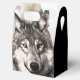 Dieses Gastgeschenk ist mit einem Schwarzweißwolf-Bild auf Vorder- und Rückseite entworfen.