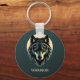 Schlüsselanhänger eines wunderschönen Stammes Wolf Gesicht in beige blau mit dem Wort Warrior. Angst trübt den Verstand als anpassbare Textoption