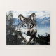 Wolf-Gesicht in einem schneebedeckten Puzzle aus Berglandschaften