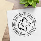 Simple yet elegant black and white illustration of a wolf head in profile. Customizable text. Please note, you may need to adjust the information you enter by adding or deleting some characters to make the text properly aligned.