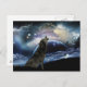 Wolf heult auf dem Mond Postkarte