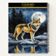 In einer ruhigen Nacht steht ein majestätischer Wolf auf einem Felsvorsprung und heult zu einem leuchtenden Vollmond HINWEIS, um Text mit dem Werkzeug Bearbeiten mit dem Design zu ändern