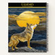 Unter dem bezaubernden Glühen eines großen Mondes steht ein majestätischer Wolf auf einer rauen Landschaft und heult bis in die Nacht. Das Fell strahlt mit Mondlicht aus, während die dunklen Berge einen dramatischen Hintergrund erzeugen. HINWEIS, um Text zu ändern, mithilfe des Tools Bearbeiten mit dem Design-Tool
