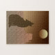 Puzzle in einer gemischten Medienkollektion eines Wolfs, der in Wüstenlandschaft auf dem Mond heult, in Braun- und Beigetönen
