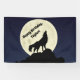Erstellen Sie personalisierte Party-Vorräte, die sich perfekt für Tierliebhaber und schlummernde Party eignen. Dieses Party-Banner zeigt einen Wolf, der vor einem dunkelblauen Himmelshintergrund im Set des Mondes heult. Es gibt einen Ort, an dem Sie Ihre eigene benutzerdefinierte Nachricht hinzufügen können.