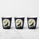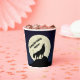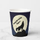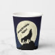 Erstellen Sie personalisierte Party-Vorräte, die sich perfekt für Tierliebhaber und schlummernde Party eignen. Diese Papiertassen zeigen eine Darstellung eines Wolfs, der auf dem Set des Mondes vor einem dunkelblauen Hintergrund heult. Es gibt einen Ort, an dem Sie Ihre eigene benutzerdefinierte Nachricht hinzufügen können.