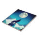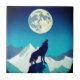 Keramik Kachel in einer schwarzen Silhouette eines Wolfs, heulend auf einem großen Vollmond, stehend auf einem Berggipfel mit, eisbedeckte Berge im Hintergrund