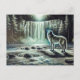lone wolf howling at the moon next to a waterfall, illustrated in soft charcoal and pastel tones, capturing a dramatic and serene moment in nature.