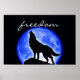Wolf Howling Freedom Blue Full Moon Night Poster