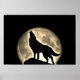 Wolf Howling Full Moon Night Vintag Sepia Poster