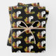 Ein Wolf heult auf Vollmond mit Herbstblättern und Eicheln vor schwarzer Kulisse.