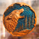 Wolf Howling Moon Imitate Wood Carving Wild Nature Fensteraufkleber