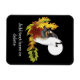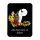 Ein Wolf heult auf Vollmond mit Herbstblättern und Eicheln vor einem Hintergrund aus schwarz.