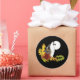 Ein Wolf heult auf Vollmond mit Herbstblättern und Eicheln in schwarzer Umgebung.