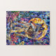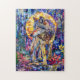 Festgehaltene Glaskunst eines Wolfs, der in einem Wald unter Vollmond heult.