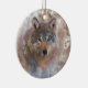 Wolf im Aquarell, ein schönes Wolfbild im Aquarell mit einem bunten Aquarellmuster im Braun, Bronze, Blau und Creme entwerfen Hintergrund