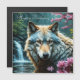 Wolf im Fluss Stehend mit Blume Geburtstag Magnetkarte