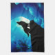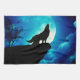 Wolf in der Silhouette heult auf Vollmond Geschirrtuch