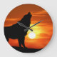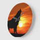 Wolf in der Sunset-Uhr Große Wanduhr