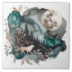 Wolf Landscape & Moon Aquamarin Gold Fliese