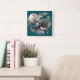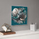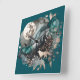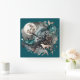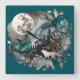 Wolf Landscape & Moon Aquamarin Gold Quadratische Wanduhr