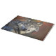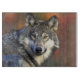 Der schöne Ausdruck eines grauen Wolfs sieht auf einer großen Vielfalt von Waren für Wildtiere phantastisch aus.