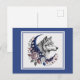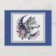 Wolf & Moon Postcard - Charming Mystischer Wolf, Halbmond, Blume