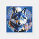 Schöner Wolf mit tiefen gelben Augen, mit Ureinwohner Amerikas Träumer, in einer wilden blauen Berglandschaft und Vollmond. Original Vector Round Logo Design abgeschieden auf weißem Copyright BluedarkArt The ChameleonArt.