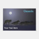 Eine kalte, grausame, mondbeleuchtete Winternacht. Ein hungriger Wolfspacker jagt um lebendig bleibe. Text mit "Kanada" erscheint auch in leuchtend blau. Fügen Sie Ihren eigenen zusätzlichen Text hinzu.