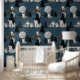 Wolf Pack Woodland Night Sky Moon Baby Nursery Tapete