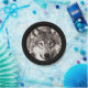 Diese Papierplatte ist mit einem grauen Wolf in der Mitte entworfen und mit einem schwarzen Trimm versehen.