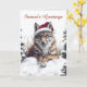 Weihnachtskarte mit einer schönen Schneeszene mit einem Wolf, der eine Weihnachtsmannmütze trägt. Sie können sowohl den Gruß auf der Vorderseite als auch die Nachricht in der Karte nach Ihren Wünschen anpassen.