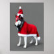Ein niedlicher und bezaubernder Wolf, gekleidet als Weihnachtsmann. Das ist eine künstlerische KI.